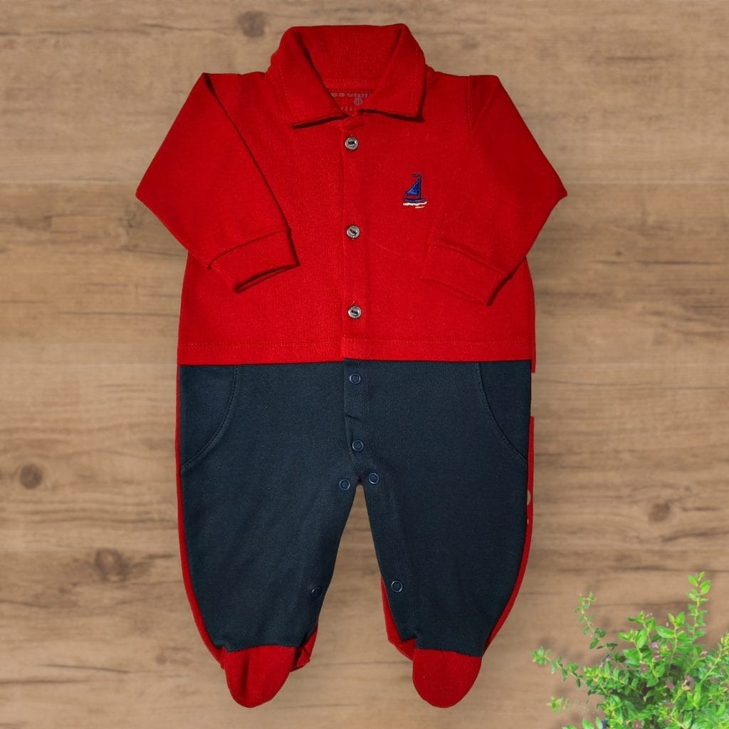 Macacão Suedini com Pezinhos Bordado Barquinho