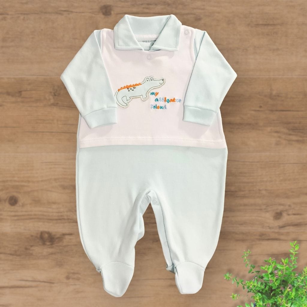 Macacão Suedini com Pezinhos Bordado Jacaré