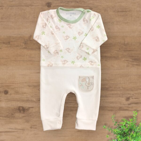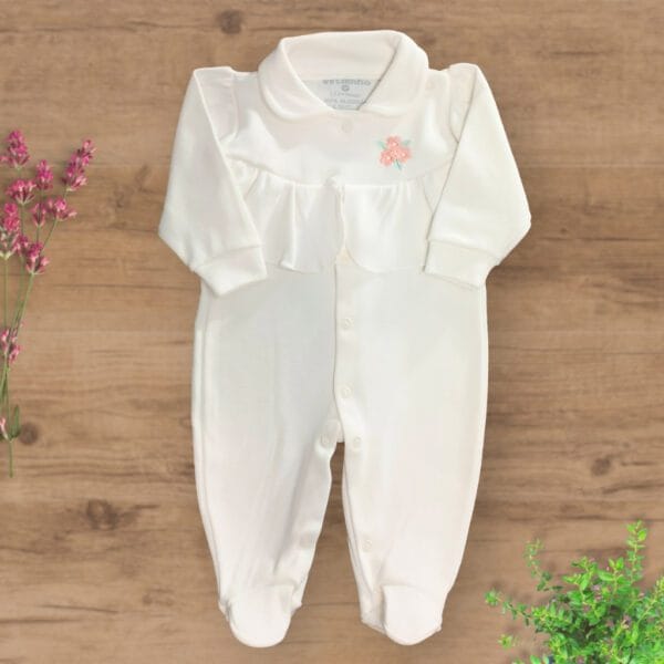 Macacão Suedini com Pezinhos Fechados Bordado Buque