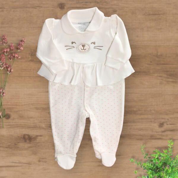 Macacão Suedini com Pezinhos Fechados Bordado Cat