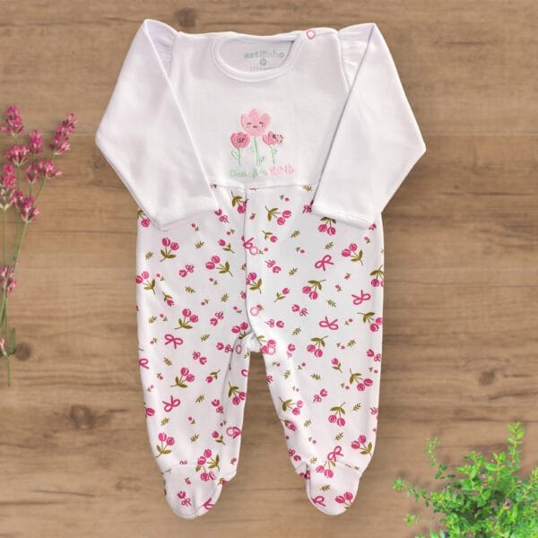 Macacão Suedini com Pezinhos Fechados Bordado Flores