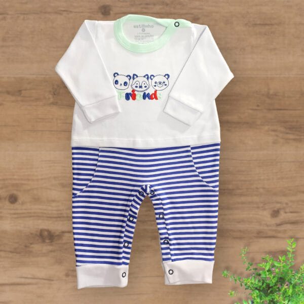 Macacão Suedini sem Pezinhos Bordado Trio Friends
