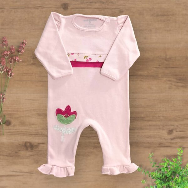 Macacão Suedini sem Pezinhos Bordado Tulipa