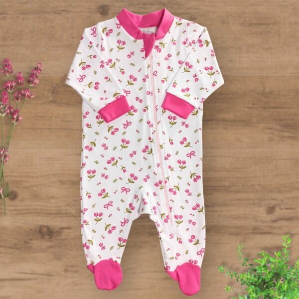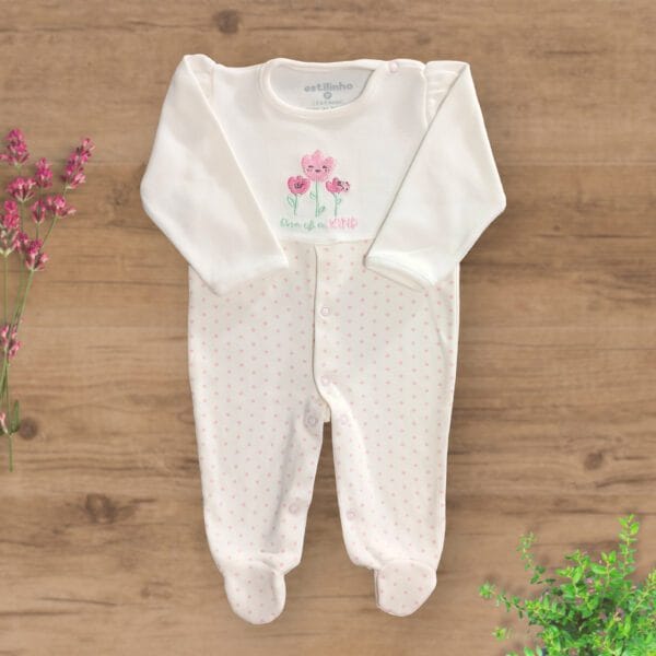 Oferecemos o que há de melhor para o seu bebê! O macacão bebê com pezinhos  da Estilinho é uma peça prática, funcional, linda e confortável para seu pequeno.