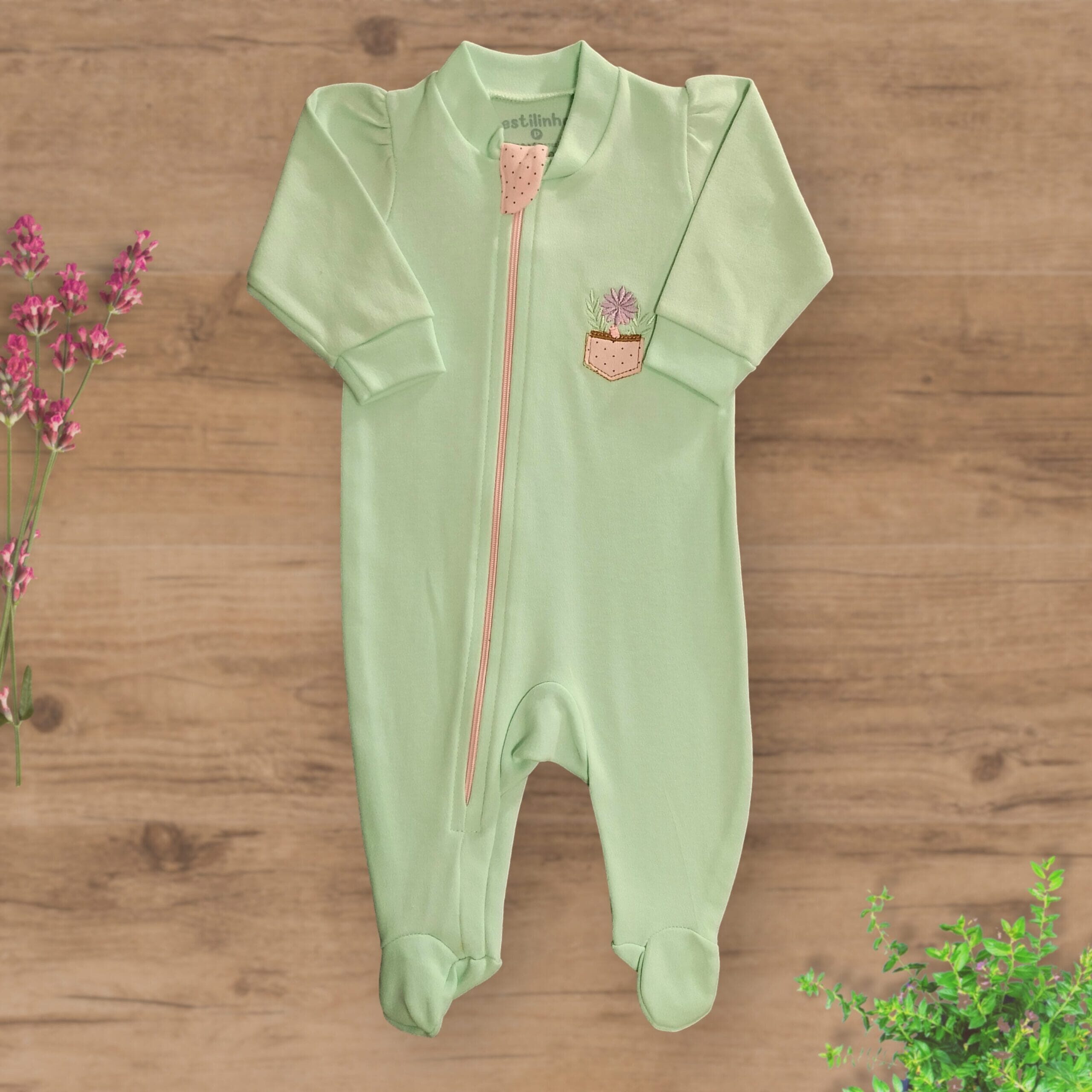 Oferecemos o que há de melhor para o seu bebê! O macacão bebê com pezinhos da Estilinho é uma peça prática, funcional, linda e confortável para seu pequeno.